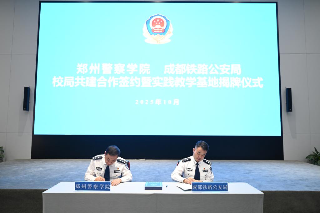 签订仪式上,白少强书记代表学校党委及全体师生感谢成都铁路公安局长期以来关心支持办学建设发展,表示学校将持续加强政治建设统筹,全力推进实战化教学改革,着力优化“教学研练战”一体化人才培养模式,推动双方在学科专业建设、联合科研攻关等方面开展更广泛、更深入的务实合作,为实现优势互补、协同创新、共建共享、合作双赢搭建良好平台,完善工作机制,同心同向为加快提升新质公安战斗力展现新成效、贡献新力量。成都铁路公安局党委副书记、政委刘晓亮在致辞中表示将以签约为起点,共同助推学校“理论高地”与公安“实战前沿”的交流融合更加密切,进一步构建人才赋能、战育交融的双赢格局。