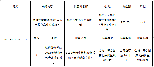 2、项目名称:铁道警察学院2022年新生箱包套装采购项目