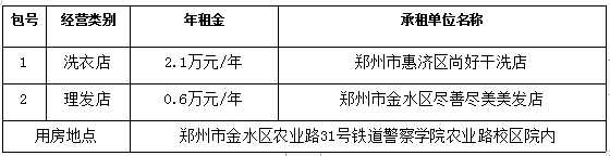 1、招租名称:铁道警察学院农业路校区洗衣店、理发店服务承租项目