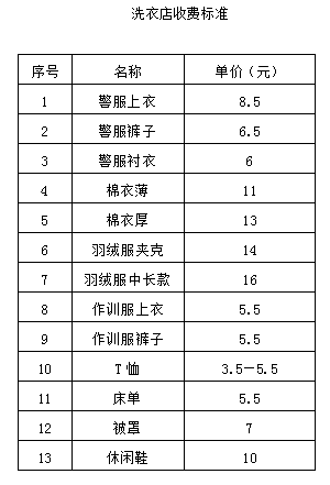 三、洗衣店、理发店服务收费标准: