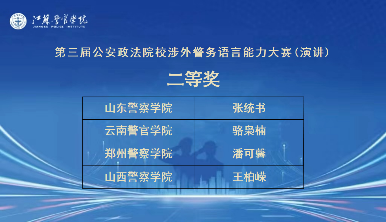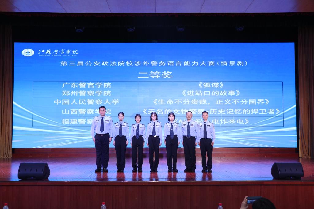 本次大赛分为“情景剧”和“演讲”两个赛道,《铁路警务英语》课程团队编制、演绎的涉外警务剧《进站口的故事》是唯一一部铁路公安题材的参赛作品,经过激烈角逐,最终总分位列第四,荣获二等奖;潘可馨同学在演讲比赛中表现优异,荣获二等奖。