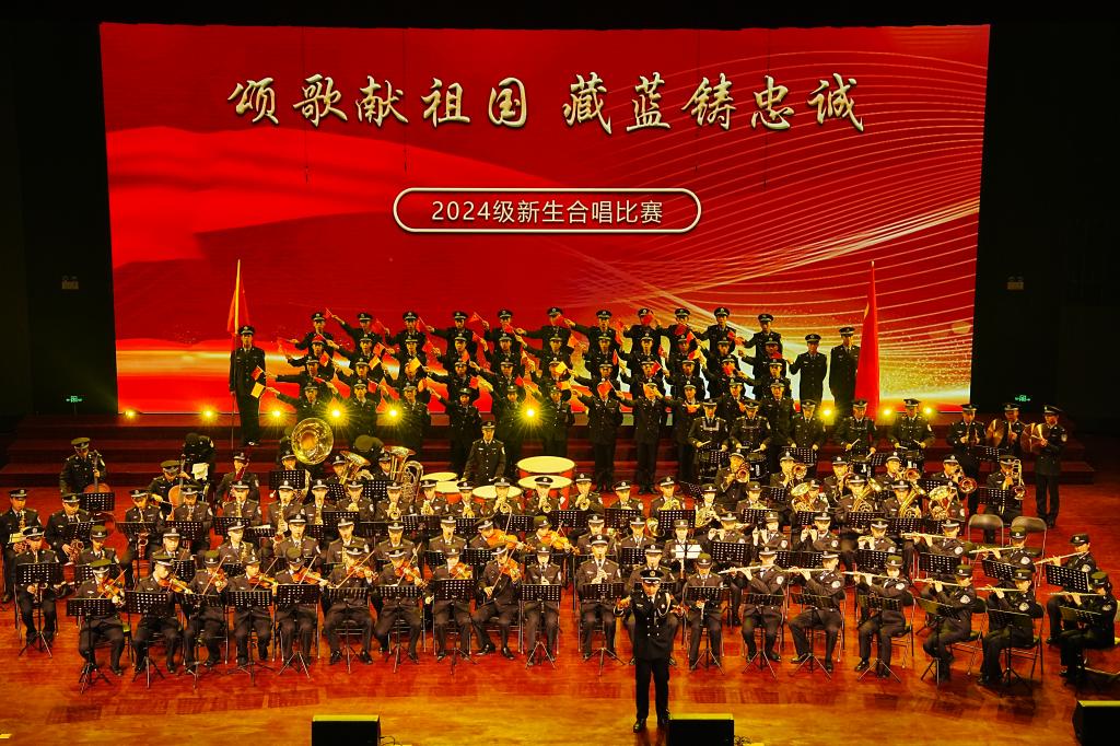 为庆祝中华人民共和国成立75周年,弘扬伟大爱国主义精神,进一步提升队伍的凝聚力与向心力,促进校园精神文明建设,我院于11月10日在龙湖校区举办“颂歌献祖国,藏蓝铸忠诚”主题合唱比赛,用歌声向祖国献礼。党委委员、副院长王荣胜,学生工作部(处)、各专业系(部)相关负责同志及2024级全体新生集体观看了比赛。