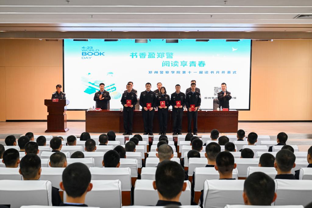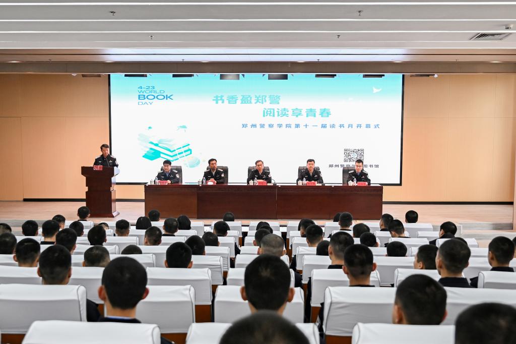 4月21日下午,在即将迎来第30个“世界读书日”之际,郑州警察学院第十一届“书香盈郑警·阅读享青春”读书月活动开幕式在龙湖校区图书馆一楼学术报告厅举行。学校党委委员、副院长、图工委主任李冠一,宣传部、学生工作部、教务处、团委、图书馆等部门负责人出席,200名学生代表参加本次活动。开幕式由图书馆负责人主持。