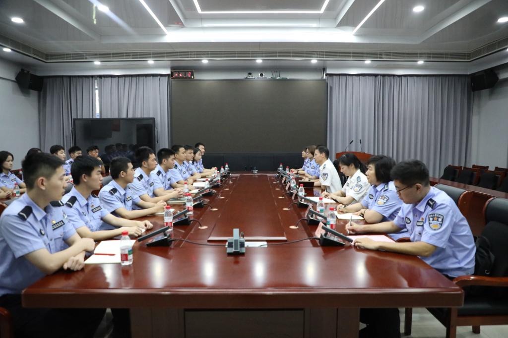7月9日,南京市公共交通和城市轨道公安局局长张涛、政委徐影秋亲切会见调研组一行,双方就新型警务运行模式、学生专业实习情况、学生警务技能培养等内容深入交流。随后,调研组前往南京南站地铁站派出所,实地察看工作环境、了解警务运行模式及学生实习情况,并与实习学生开展座谈交流会。会上,同学们分享了实习收获、感悟及典型案例,双方总结交流经验;调研组则对实习工作的安全、保密、反诈和学习等方面提出具体要求,同时通过问卷调查了解学生实习期间的心理状况,对学生提出的问题进行针对性解答。