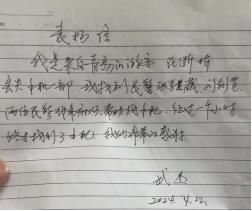 2024年4月21日,城轨系实习学警张学藏,刘剑芃在杭州西湖景区分局岳庙派出所断桥岗亭执勤时,接到群众求助称在网约车上遗失了一部手机。在接到求助后两人立即进行处理,在处理过程中网约车司机及平台并不承认失主手机遗失在所乘坐的网约车上,随后,两名实习生及时报告带班师傅在对手机进行定位,发现遗失手机确实遗落在乘客所乘坐的网约车上,在收集到确凿证据后,两人立即通知网约车司机归还失主手机,求助群众得知手机找到后撰写表扬信向两名实习生及民警表示感谢。