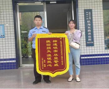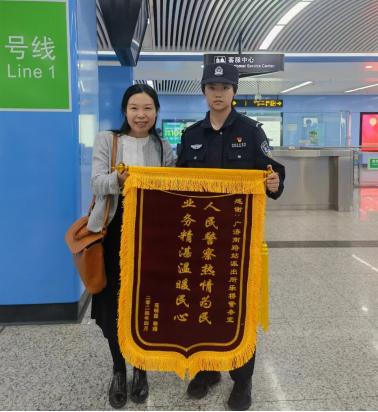 接到报案后,实习学警祁佳仪迅速报告带班师傅并跟随师傅赶到现场。看到范女士焦急万分失了方寸,祁佳仪首先耐心劝导稳定了范女士的情绪,待范女士情绪稳定后,根据其提供的信息描述,发现笔记本在乐桥站五号口外被一名园林绿化工人捡走后不知去向,祁佳仪与师父宋健伟迅速进入工作状态,通过查看车站的监控录像、分析轨迹、比对相关特征走访询问站内工作人员和乘客,很快找到了捡拾笔记本的人员,并顺利取回了笔记本。