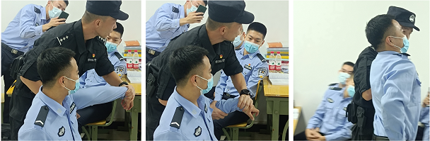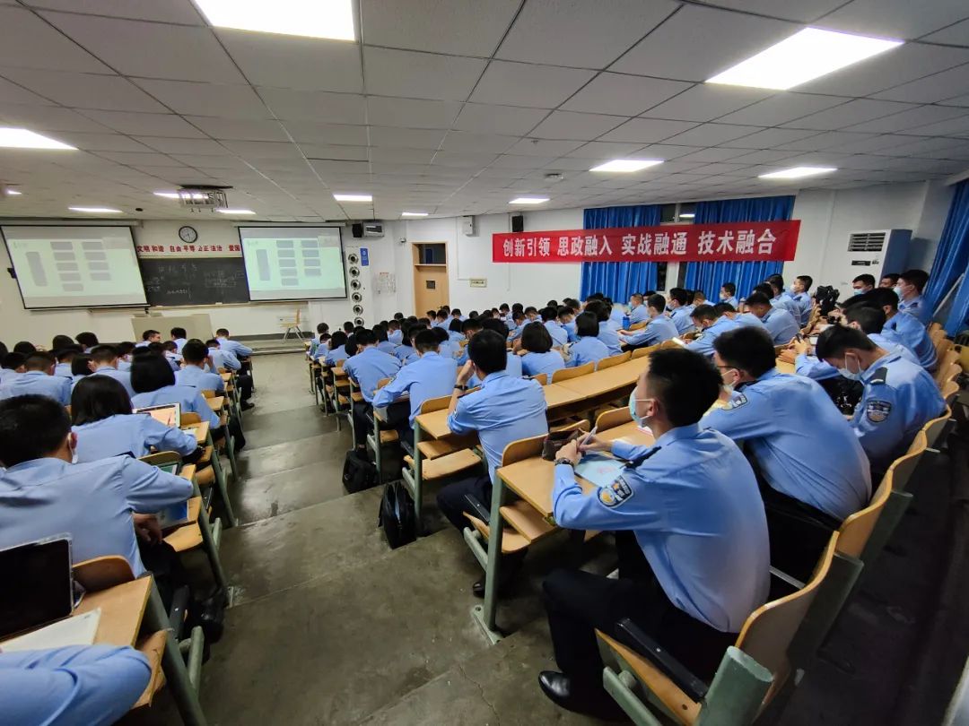 第四层:延伸培训——导研修。实战教官常态化、成建制的驻校任教学习为学院教师提供了良好的交流平台,治安学、城轨、警体、刑事科学技术、侦查学等教学系部50余名专任教师现场观摩实训教学,与实战教官交流研讨,提升了个人的实战化教学能力。