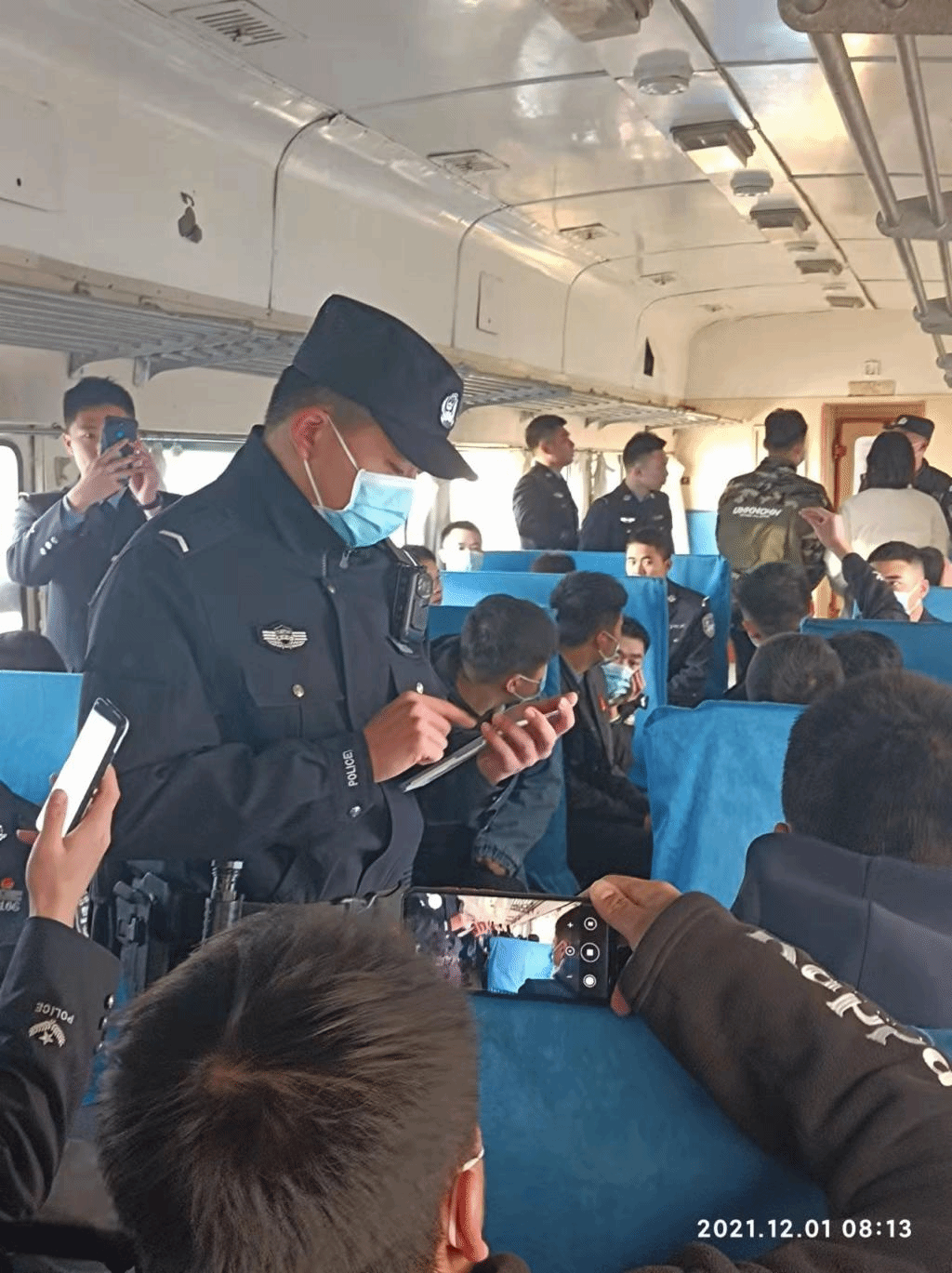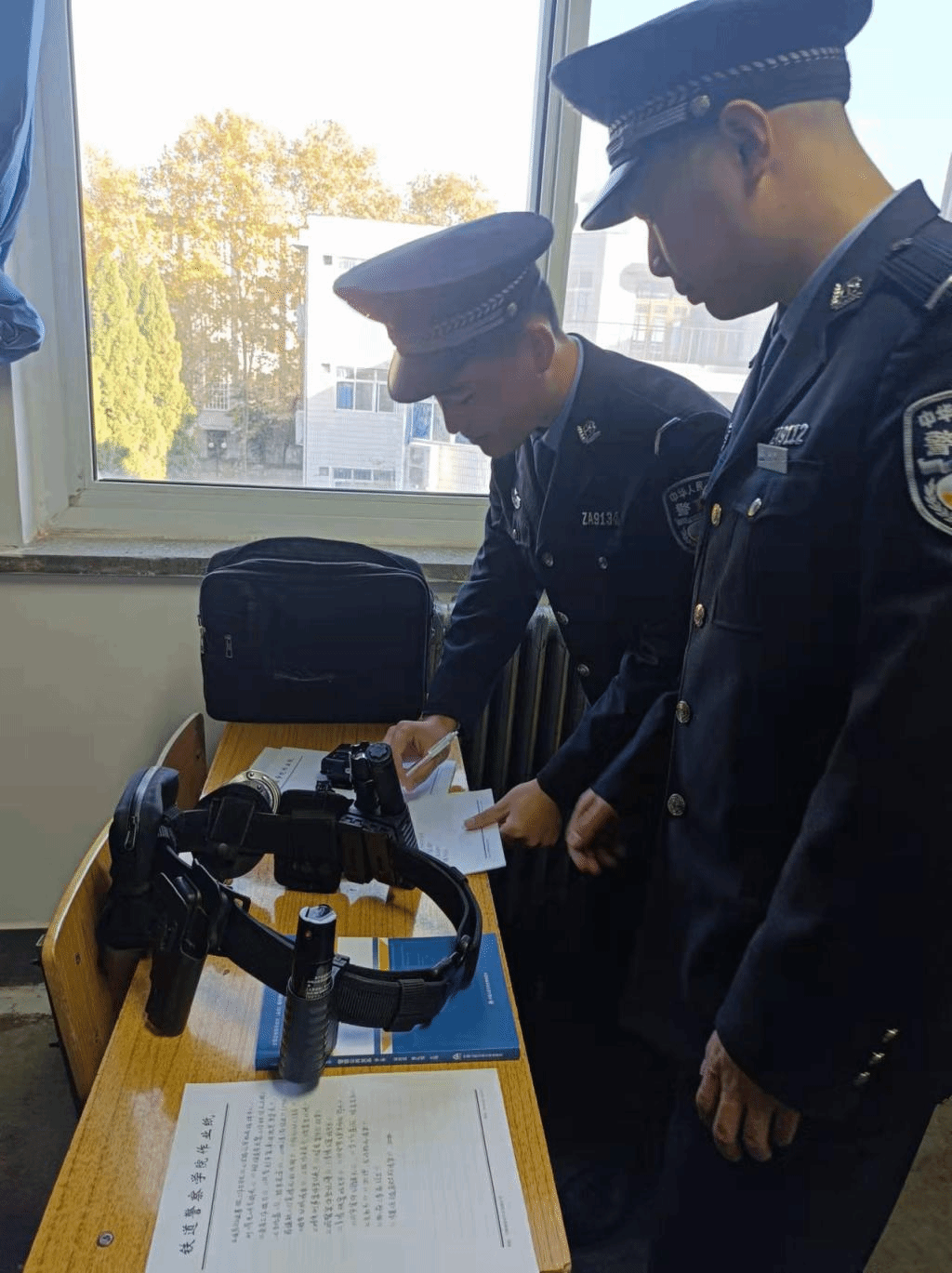 学生在实训乘警出乘时的装备领取