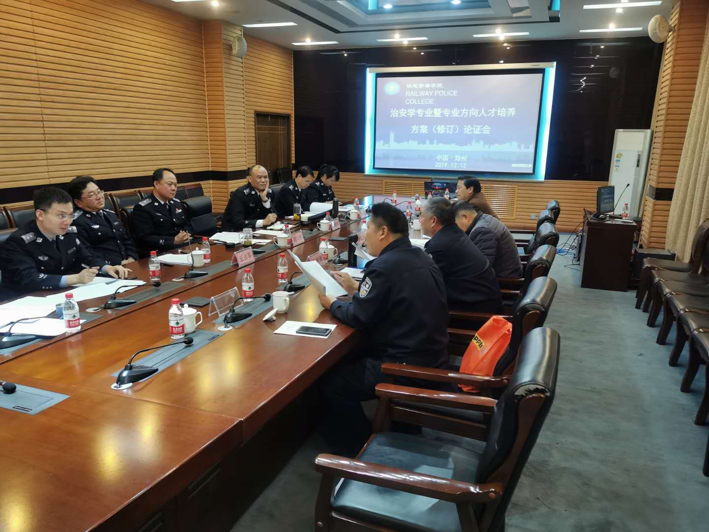 高校专业人才培养方案是人才培养目标、基本规格以及培养过程和方式的总体设计,是学校保证教学质量的基本性教学文件,为保证我院治安学专业暨方向人才培养方案的科学性、合理性、实用性。根据学校的 要求,12月12日,治安学专业暨专业方向人才培养方案(修订)论证会在学院图书馆三楼会议室召开,论证会由治安学系和铁路警务系联合主办,来自中国人民公安大学、中国人民警察大学、江西警察学院、河南警察学院等公安院校的专家学者和河南省公安厅机场公安局、郑州铁路公安处等公安实务部门有丰富实践经验的同志应邀参会,为治安学专业和有关专业方向人才培养方案制定(修订)把脉问诊。