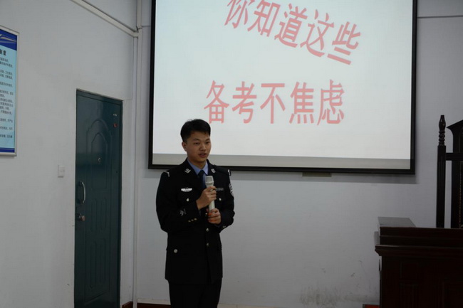 5月8日下午,为加深学生们对公安联考的认识,缓解心理压力,降低考前焦虑情绪,学院心理健康教育中心邀请联考成绩优异的15级毕业班学员,在团训室开展了一场“缓解联考焦虑交流会”。最后,由心理健康教育中心李老师对交流会内容进行分析、总结提升,使学生们既加深了对公安联考的认识,又掌握了缓解考试焦虑的方法。交流会方式新颖,内容贴近学生关心问题,现场反响热烈。
