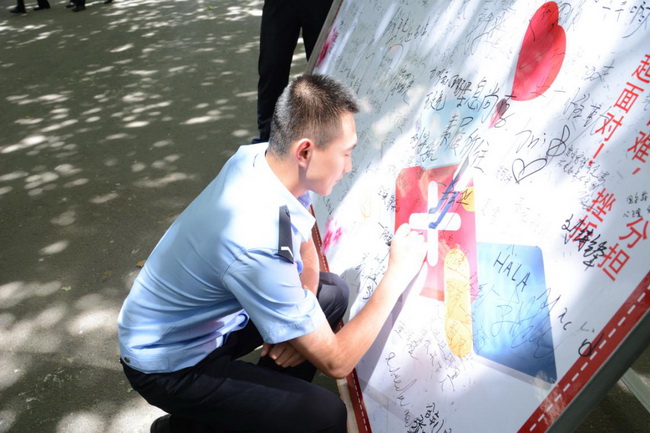 5月20日和22日中午,心理健康教育中心刘老师带领心理协会成员在林荫大道开展心理健康宣传活动,分发专门为我院学生编写制作的心理健康宣传手册、小礼品等,向学生们介绍“525”的含义,提醒学生们要学会关爱自己,正确看待心理问题,了解寻求心理帮助的途径等。活动得到学院领导的肯定与支持,依次在宣传展板上签名,以示鼓励。另外,广大师生也积极参与其中,纷纷在宣传展板上签名留言。