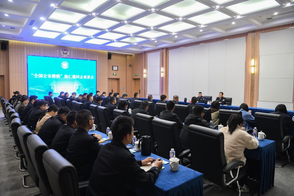 讲座当日上午,在龙湖校区报告厅举办了“全国公安楷模”杨仁德座谈会,来自学院各系部的博士及骨干教师代表共计40余人出席了此次会议。座谈会上,杨仁德以自己的经历为例,强调了在工作中明确“人民公安为人民”的责任使命的重要性,指出了公安工作应紧跟时代潮流,充分利用大数据技术对大量信息进行分析和挖掘,推进智慧公安建设,为公安决策和实战提供有力支持,并结合一线工作经验回答了教师们关于各自工作领域的问题。(文字来源:2023侦查杜佳薇、2023城轨朱籽同、2024管理曲佳祎、2024图侦徐海悦)