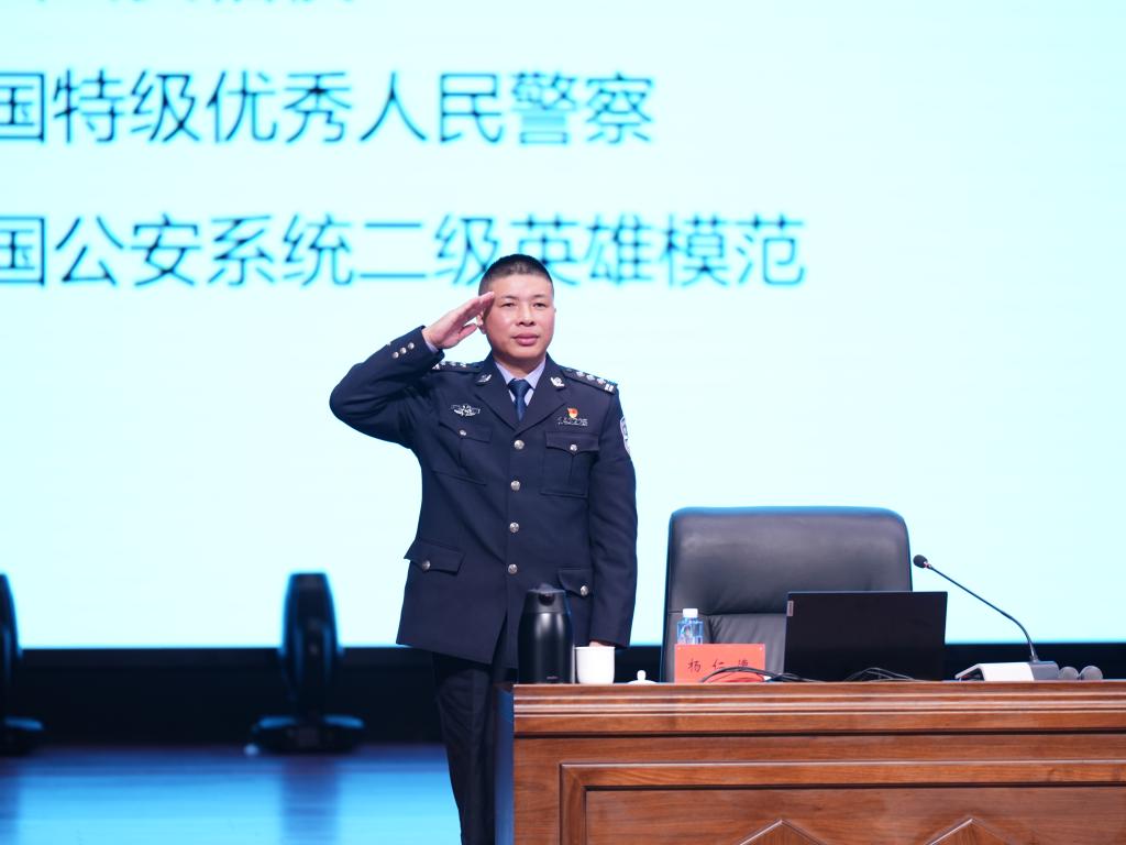 为加强校局合作,进一步提升我院人才培养质量,11月6日下午,我院在龙湖校区礼堂举办同泽讲堂第四期,邀请全国公安楷模、杰出校友杨仁德同志到校做报告,全体2024级学生、新进教师及马克思主义教研部教师现场聆听。