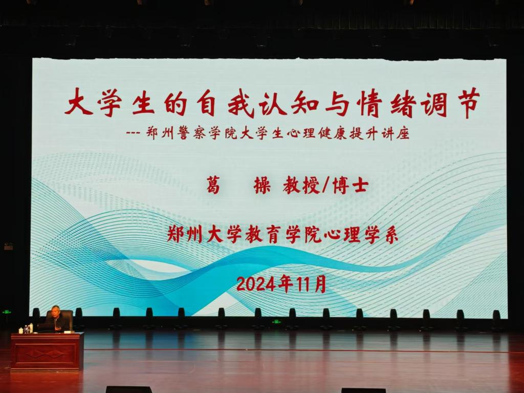 为进一步加强我院心理健康教育工作,不断提升学生心理健康素养,11月13日下午,郑州大学教育学院心理系葛操教授受邀做客学院第38期学风讲堂,以《大学生的自我认知与情绪调节》为主题,在龙湖校区礼堂,为我院1000余名学生开展专题讲座。受学工部邀请,刑事科学技术系许文清老师主持讲座。