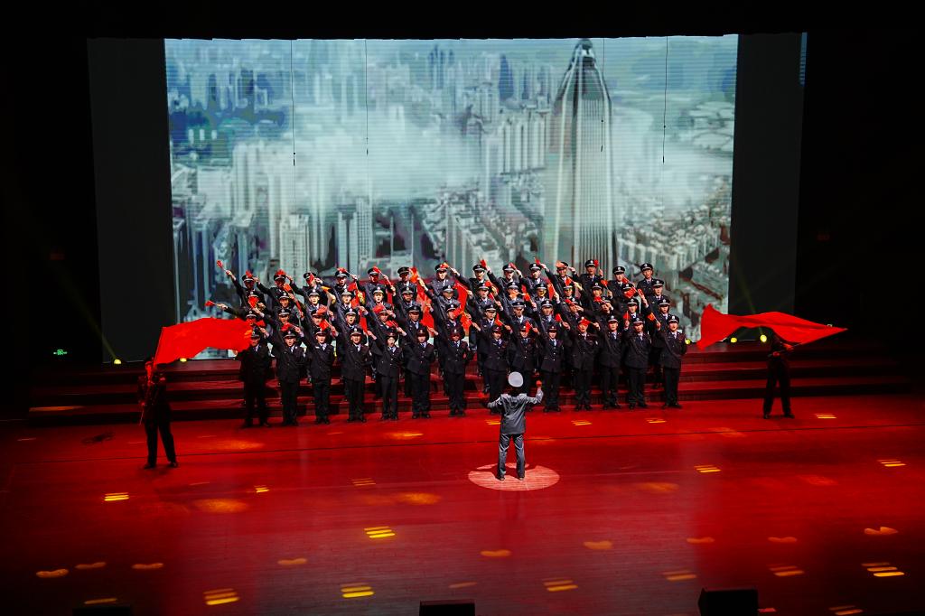 为庆祝中华人民共和国成立75周年,弘扬伟大爱国主义精神,进一步提升队伍的凝聚力与向心力,促进校园精神文明建设,我院于11月10日在龙湖校区举办“颂歌献祖国,藏蓝铸忠诚”主题合唱比赛,用歌声向祖国献礼。党委委员、副院长王荣胜,学生工作部(处)、各专业系(部)相关负责同志及2024级全体新生集体观看了比赛。