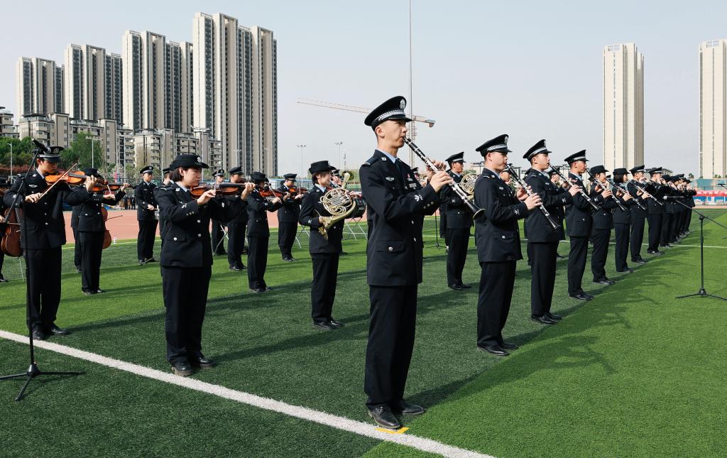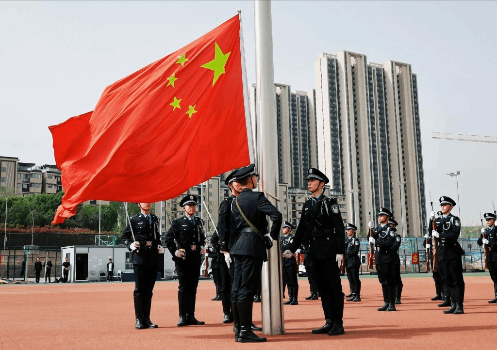 开幕式伊始,由铁鹰仪仗队护卫五星红旗稳步进场。在警乐团壮丽恢宏的齐奏声中,全体在场人员面向国旗庄严敬礼,高唱中华人民共和国国歌。