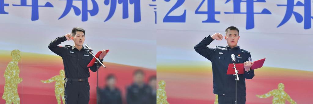 运动员代表、侦查学系2023级张景浩同学宣誓。裁判员代表警体部时付强老师宣誓。