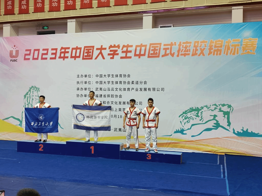 10月16日至21日,由中国大学生体育协会主办的“2023年中国大学生中国式摔跤锦标赛”在福建武夷山市体育馆开赛,来自全国各大高校的45支代表队、450余名运动员同台竞技。经学院批准,我院摔跤代表队共选派7名队员,由警察体育和战术训练教研部穆红猛任主教练带队参加比赛。