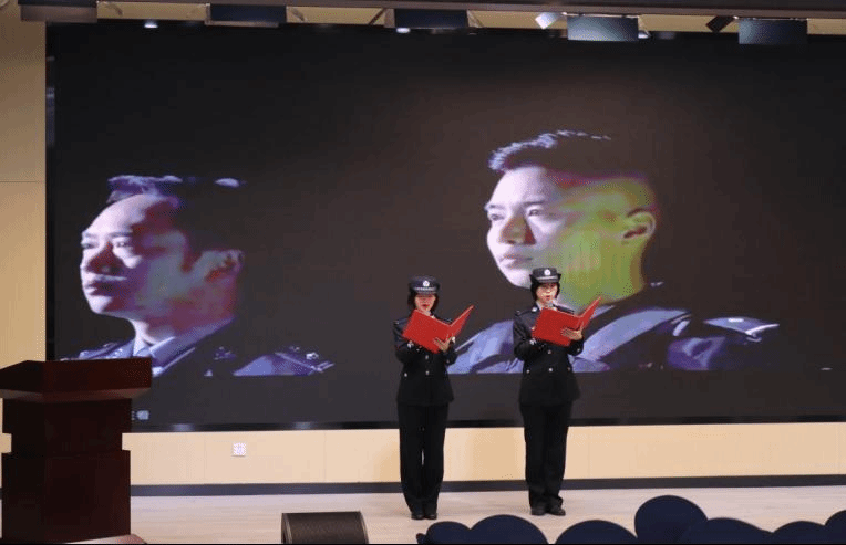 感悟英烈精神,传承忠诚警魂。“金色盾牌,热血铸就。不忘初心,再立新功。”诗朗诵《缅怀英烈》《弘扬英烈精神,续写英雄荣光》字字真切,字字铿锵有力。铁骨丹心筑警魂,坚毅执着为人民。