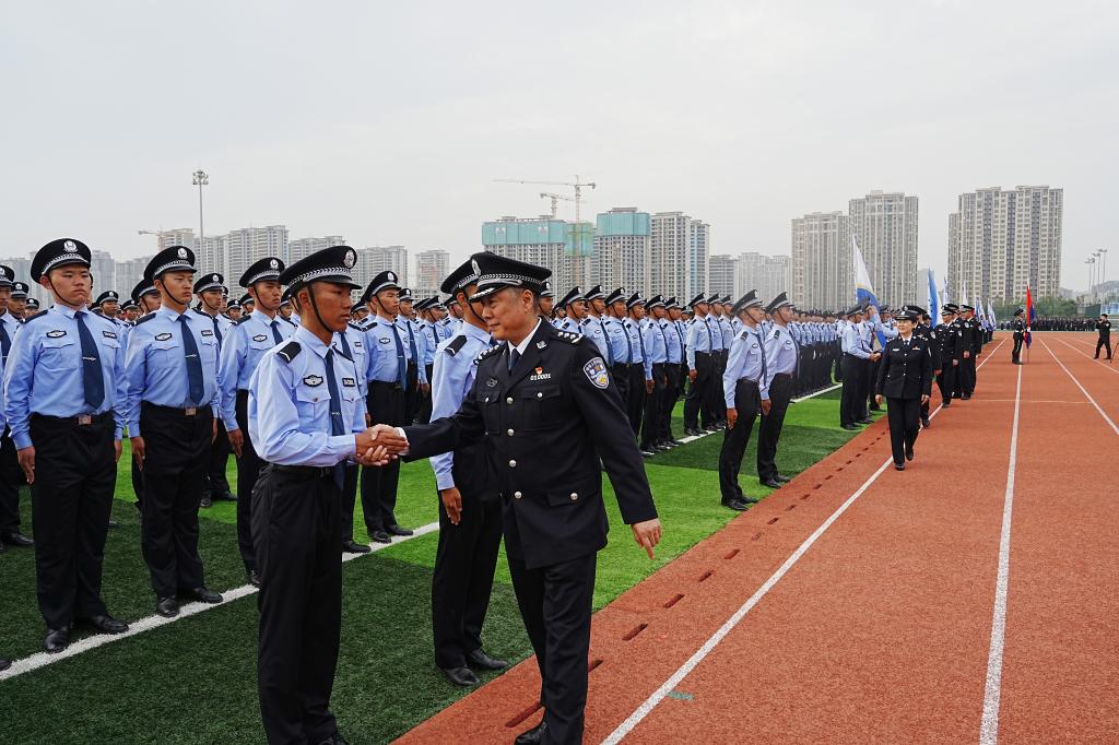 白少强书记向同学们提出三点希望,一是坚持政治建警,永葆对党忠诚政治本色。要坚持以习近平新时代中国特色社会主义思想武装头脑,认真贯彻落实党的二十大精神,切实以理论上的清醒保持政治上的坚定。要坚持“三个牢牢把握”,自觉把个人理想追求与国家民族前途命运紧密相连,融入到公安事业发展大局之中,深刻领悟“两个确立”的决定性意义,增强“四个意识”,坚定“四个自信”,做到“两个维护”,筑牢高举旗帜、听党指挥、忠诚使命的思想根基,永作党和人民的忠诚卫士。二是认真勤学苦练,提高为民服务能力素质。要始终把大学作为增长本领、磨砺才干的练兵场,作为锤炼意志、砥砺作风的大熔炉,勤学苦练、敏学笃行,真正成长为公安事业可堪大用的精兵、能担重任的栋梁。要坚守人民立场、厚植人民情怀,涵养联系群众的“地气”,练就过硬本领、强化实战能力,践行“人民公安为人民”的铮铮誓言,报效祖国、服务人民。三是强化法纪意识,锻造“四个铁一般”过硬队伍。要深入学习贯彻习近平法治思想,精通公安业务法律法规,强化法治意识,提升法治素养,积极培育执法公正的价值取向,始终做社会公平正义的坚定维护者。要自觉树牢人民警察意识,不折不扣落实全面从严管警治警要求,认真执行学院警务化管理各项制度,切实将纪律条令、作风要求渗透到学习、生活、训练、实践的各个方面,养成服从命令、听从指挥、严守纪律、令行禁止的过硬作风。要敢担当、勇作为,争做靠得住、站得出、顶得上、打得赢的先锋模范,不负党的期望、人民期待、民族委托,奋力逐梦成长。