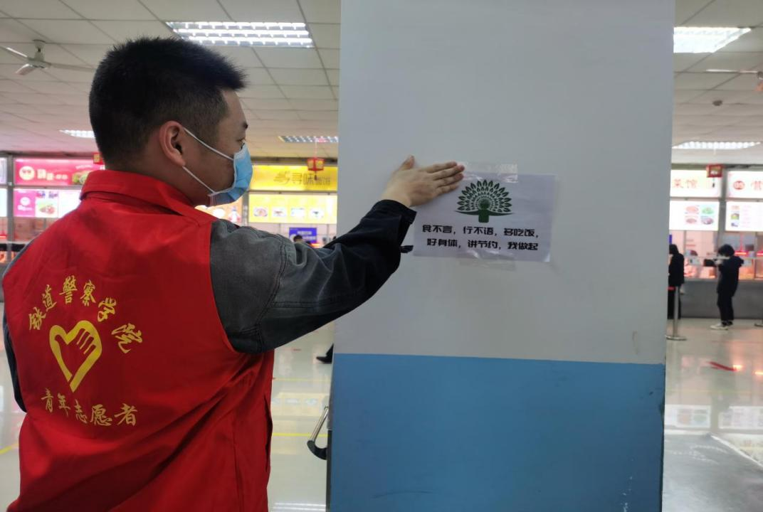 “食”“光”牢记,关“住”点滴。勤俭节约是雷锋精神的内涵之一。志愿者们设计出一系列简明有趣的标语,如“食不言,行不语,多吃饭,好身体,讲节约,我做起”“节约能源做得好,用水用电没烦恼”等宣传标语,以粘贴标语、派发宣传单的方式让同学们自觉养成良好生活习惯,树立勤以养志,俭以修德的美德,并在生活点滴中做到节约有度。