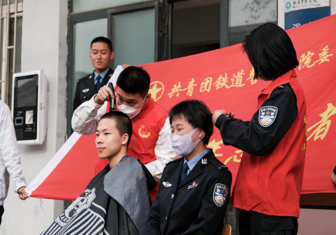 从“头”强化警容风纪。全体在校生均应严格依照“高标准,严要求”,强化自身警容风纪。青年志愿者联合会进行志愿服务,为同学们免费理发,树立新形象,提振精气神。用实际行动帮助同学们树立良好形象,干练的警容自上而下、由外及内地体现铁警学子的青春风采与纪律担当,展现铁警学子良好的精神面貌。
