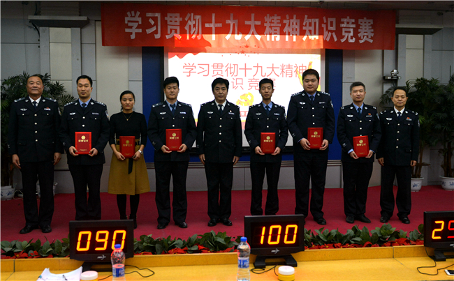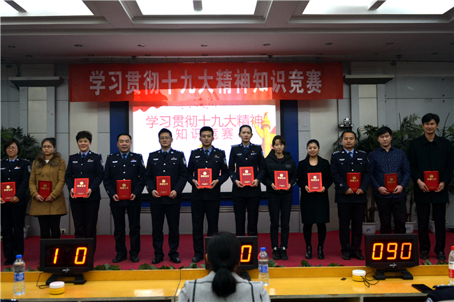 为学习好、宣传好、贯彻好、落实好党的十九大精神,切实把思想和行动统一到党的十九大精神上来,深化学习热潮,丰富学习形式,调动学习积极性,按照学院学习贯彻十九大精神工作部署,11月22日下午,由党委宣传部和院工会联合承办,新闻中心(学生)、金盾之声广播站与书画协会协办的学习贯彻十九大精神知识竞答比赛在实验楼七楼学术报告厅举办。院长助理王哲与全体教职工参加了本次活动。