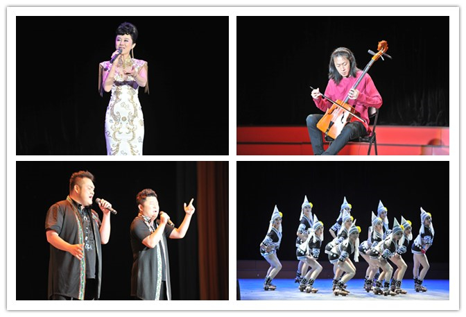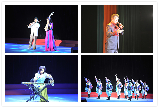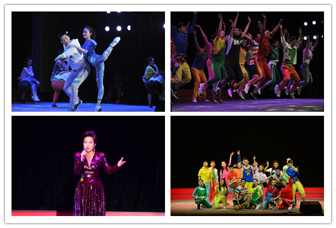 演出在舞蹈《快乐舞步》中拉开了帷幕,伴随着欢快的音乐,几十位艺术家身着民族盛装闪亮登场,热烈欢快的舞步瞬间点燃了观众的热情。接下来,张铎的马头琴独奏《万马奔腾》引人入胜,琴声时而悠扬,时而刚劲;沈利、朱韬带来的女声独唱《编花篮》、《一杯美酒》等歌曲,使观众再一次重温经典;哈尼族木履舞蹈《山谷回响》、塔吉克族舞蹈《阳光洒满帕米尔》,展现了少数民族艺术的别样魅力;二月半组合的《谢谢侬》、《悟空》给大家带来了欢快的流行音乐体验;女子十二坊成员雷滢演奏的独弦琴《山歌好比春江水》、《贝加尔湖畔》优雅温婉;赵雄、王帅的笛子与琵琶合奏《卷珠帘、少林少林》节奏悦耳,给观众留下了深刻印象;朝鲜族男高音歌唱家、国家一级演员蓝剑倾情演绎的《互相帮助》等民歌联唱,传递着满满正能量,赢得场下掌声阵阵。最后,整场演出在以《走在乡间的小路上》《同桌的你》《飞得更高》等熟悉的旋律组成的舞蹈《青春之歌》中圆满谢幕。整场晚会以舞蹈、合唱、独唱、独奏、合奏等多种形式,演绎了不同民族、不同风格的民族舞蹈、演唱和乐器演奏,为师生们呈现了一场丰富的视听盛宴。