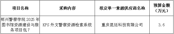 玖洋项目管理咨询有限公司受郑州警察学院的委托,就郑州警察学院2025年图书馆资源建设与服务项目包7进行单一来源采购,现邀请合格供应商前来参加。