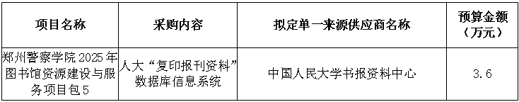 玖洋项目管理咨询有限公司受郑州警察学院的委托,就郑州警察学院2025年图书馆资源建设与服务项目包5进行单一来源采购,现邀请合格供应商前来参加。