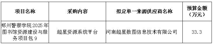玖洋项目管理咨询有限公司受郑州警察学院的委托,就郑州警察学院2025年图书馆资源建设与服务项目包9进行单一来源采购,现邀请合格供应商前来参加。