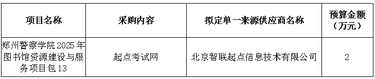 玖洋项目管理咨询有限公司受郑州警察学院的委托,就郑州警察学院2025年图书馆资源建设与服务项目包13进行单一来源采购,现邀请合格供应商前来参加。