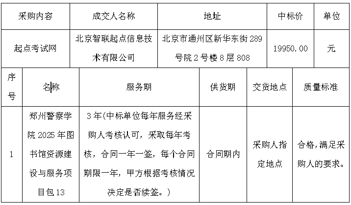 本次成交结果公告在《中国政府采购网》、《中国招标投标公共服务平台》、《郑州警察学院校园网》上发布。成交公告发布之日起1个工作日。