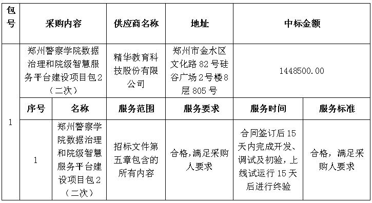 2.采购项目名称:郑州警察学院数据治理和院级智慧服务平台建设项目包2(二次)