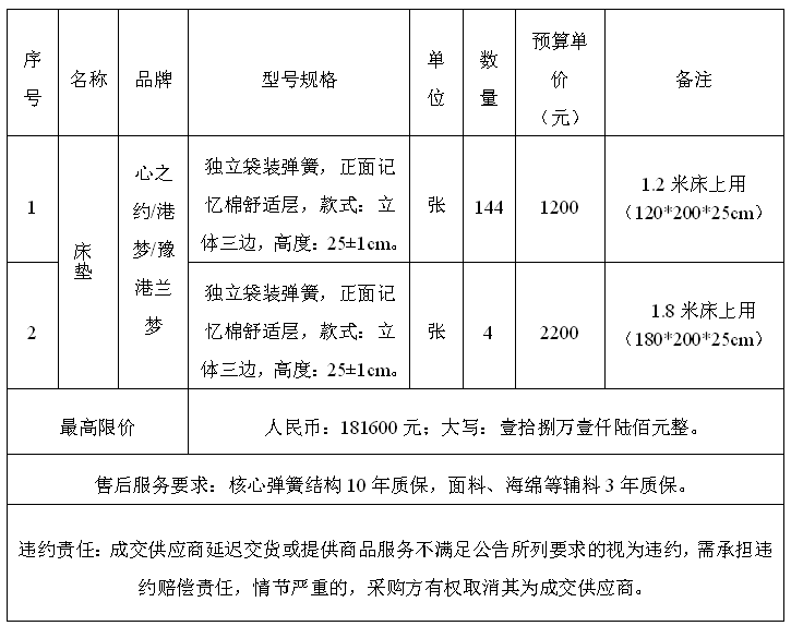 5、最高限价181600元(壹拾捌万壹仟陆佰元整)包括材料费、安装费、运输费、税费、人工费等所有费用,超过最高限价为无效报价。
