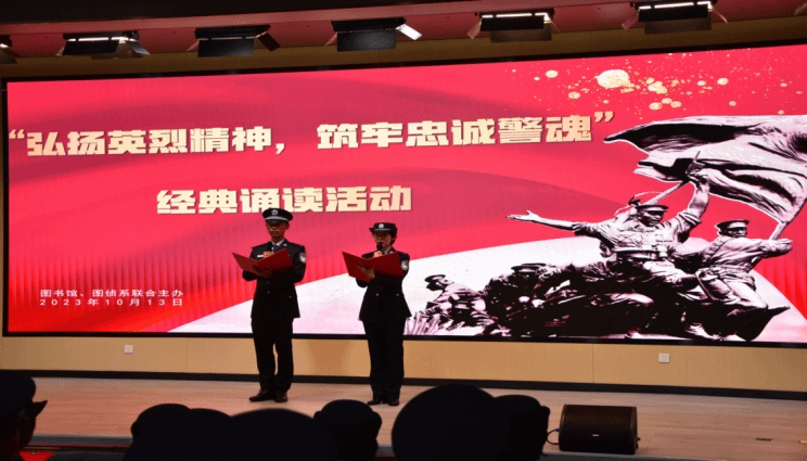 为了深入学习宣传贯彻习近平总书记给公安大学在读英烈子女重要回信精神,切实把党中央的关心关怀转化为做好公安教育工作的强大动力,牢记初心使命、勇于担当作为,10月13日晚,由学院图书馆、图像与网络侦查系联合主办的“弘扬英烈精神,筑牢忠诚警魂”经典诵读活动在龙湖校区图书馆报告厅成功举行。2022级与2023级部分学生参与本次活动。