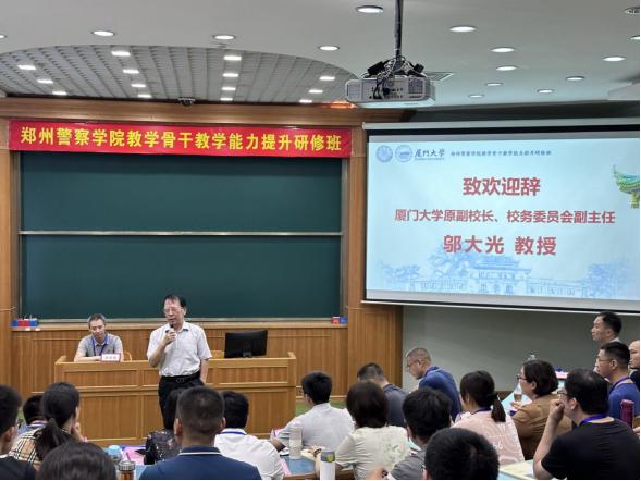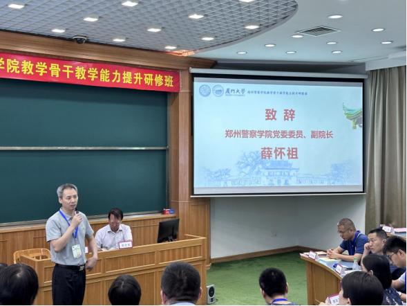 7月2日上午,郑州警察学院教学骨干教学能力提升研修班开班仪式在厦门大学举行。薛怀祖副院长与厦门大学原副校长、校务委员会副主任邬大光及我院参训教师近60人一起参加开班仪式。
