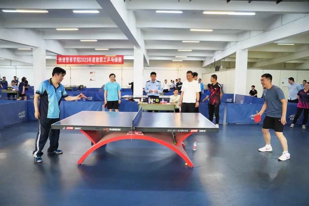 为丰富广大教职工的校园文化生活,提高教职工的健康素质,促进相互交流,以更好的精神状态投入到学院的建设工作中去,5月11日,铁道警察学院2023年度教职工乒乓球比赛在学院教职工活动中心正式开幕,党委副书记吕萍出席开幕式。