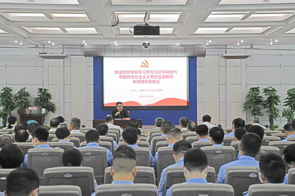 为深入开展学习贯彻习近平新时代中国特色社会主义思想主题教育,引导全体干部教师深刻学习领会党的二十大提出的新思想新论断、作出的新部署新要求,加深对习近平新时代中国特色社会主义思想的学习理解贯彻执行,切实把思想和行动统一到党中央精神上来,5日下午,学院主题教育领导小组邀请郑州大学马克思主义学院冯聚才教授作学习贯彻习近平新时代中国特色社会主义思想主题教育专题辅导报告。公安部主题教育第四巡回指导组组长万红刚,在郑院领导及学院全体党员、干部现场聆听了报告会。