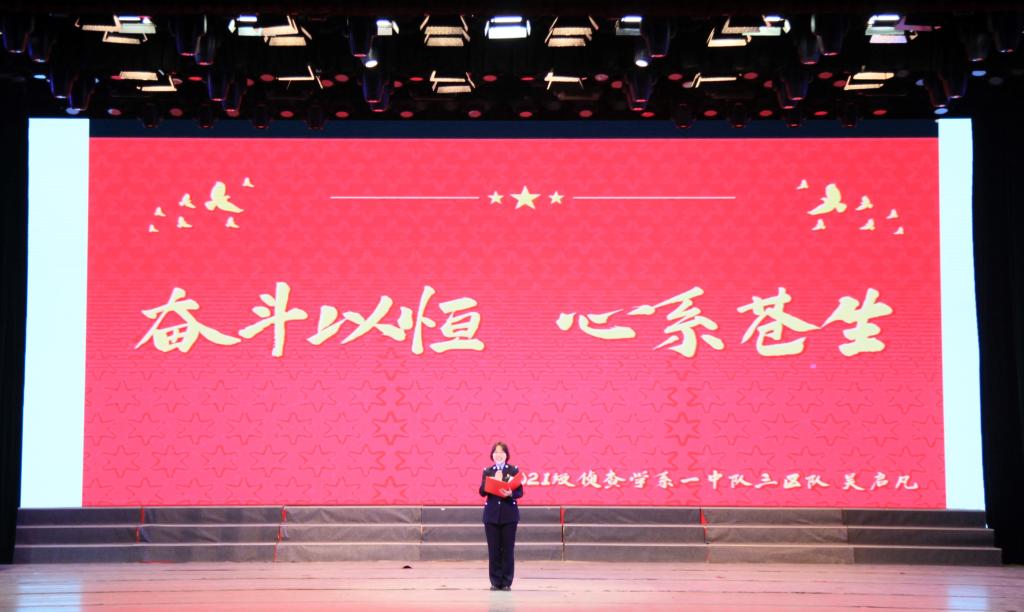 随即,进行了演讲比赛。侦查学系的王若璇同学以《一颗红心,身披藏蓝》分享了走好从警路中“红”与“蓝”的思考认识和行动实践;图像与网络侦查系的张佳秀同学通过讲述党的百年奋斗历程展现风华正茂的百年大党和万众一心、奋发有为的中国人民,号召同学们不忘初心、牢记使命,勇担社会责任;公安管理学系的谢牧辰同学讲述了何为新境界,如何建功新时代,激励同学们成长为合格的公安事业接班人;刑事科学技术系的柳承君同学演讲了《协时代之力,谐青春之章》,结合自身经历讲述学习二十大中“立大志、明大德、成大才、担大任”的思考;侦查学系的吴启凡同学以《奋斗以恒,心系苍生》提出了筑梦圆梦从警中的勇为实践与奋斗成果。