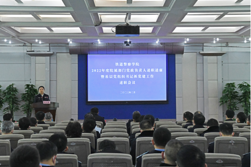 为深入学习贯彻习近平新时代中国特色社会主义思想和党的二十大精神,加强对党员干部的科学管理,正确评价干部的德才表现和工作实绩,规范干部及教职工年度考核工作,根据公安部《关于组织开展2022年度考核评议工作的通知》、中共河南省委教育工委《2022年度高校党组织书记抓基层党建述职评议考核工作方案》和《铁道警察学院教职工年度述职述廉考核工作实施办法》,2月17日,本院举行2022年度基层党组织书记抓党建工作述职评议考核会议和年度院属部门党政负责人述职述廉会议。全体院领导和全院副处级、专业技术副高级以上干部教师参加大会。