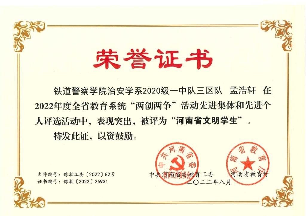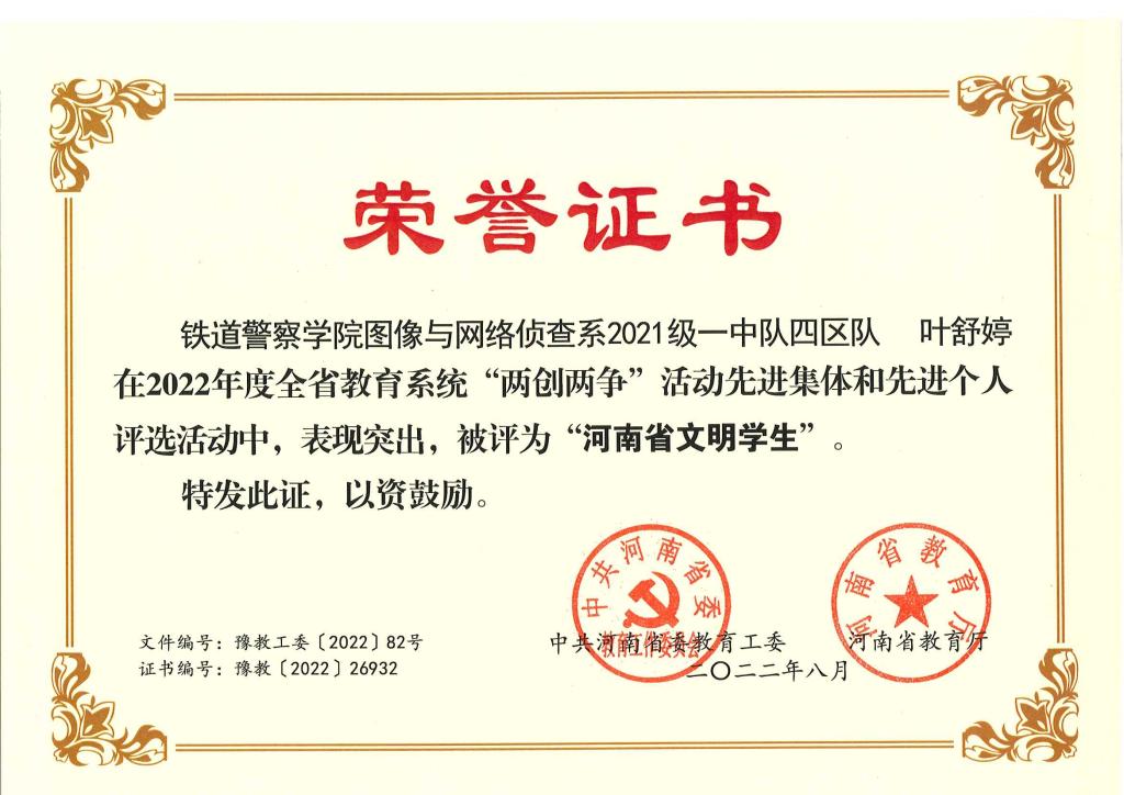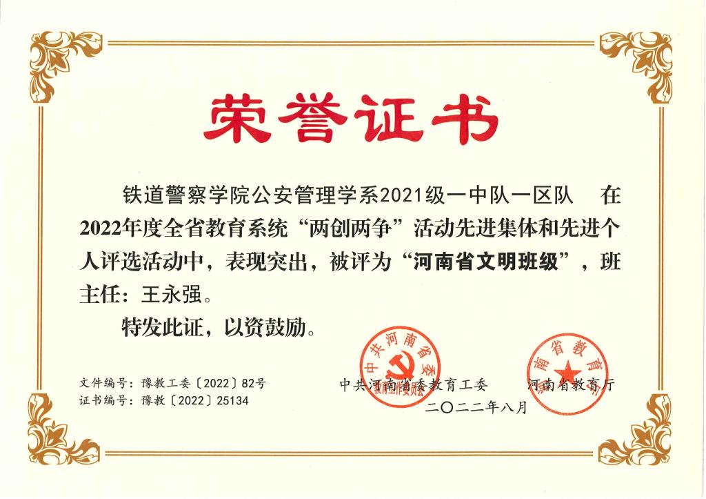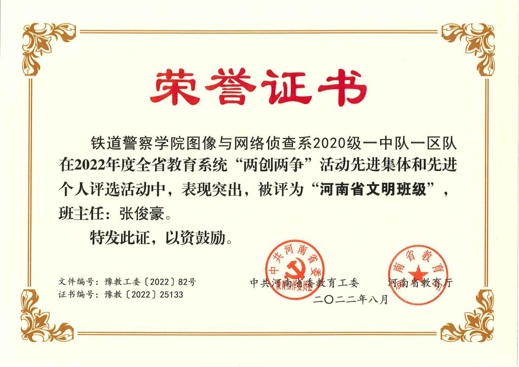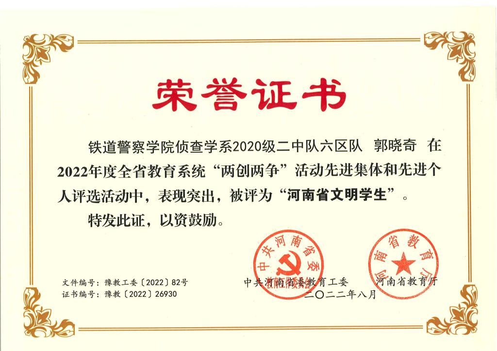 其中,图像与网络侦查系2020 级一中队一区队、公安管理学系 2021 级一中队一区队荣获文明班级; 侦查学系2号学生公寓219宿舍荣获文明宿舍;公安管理学系公安管理教研室邢贺超荣获文明教师;侦查学系2020级二中队六区队郭晓奇、治安学系 2020级一中队三区队孟浩轩、图像与网络侦查系2021级一中队四区队叶舒婷荣获文明学生;侦查学系何宁川荣获文明网民。