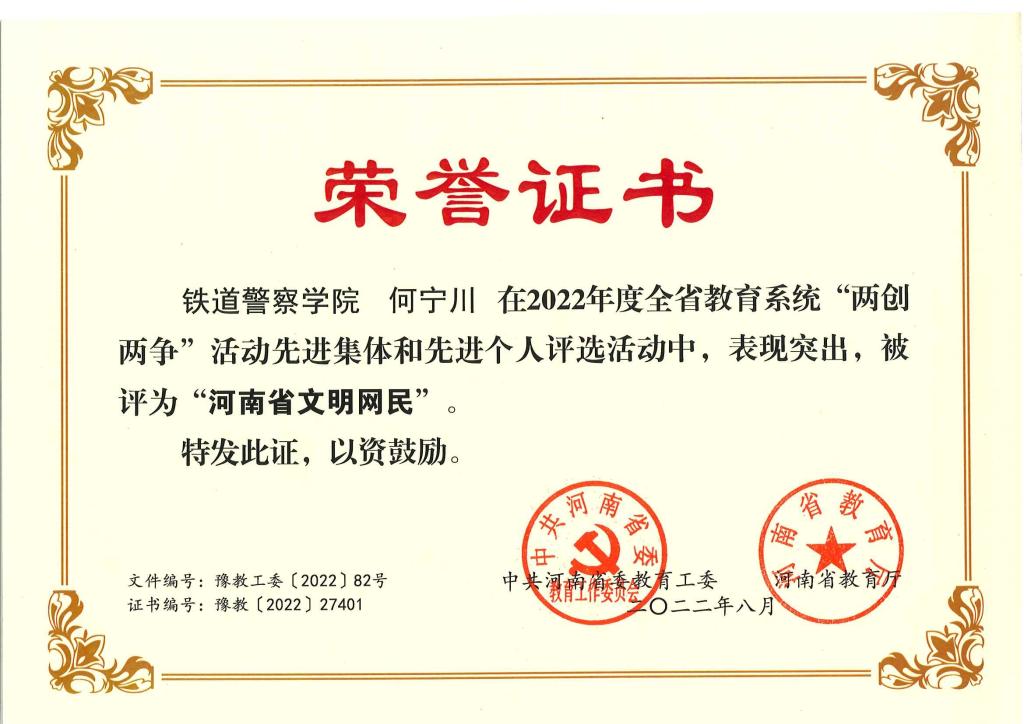 近日,中共河南省委高校工委、河南省教育厅下发《关于公布2022年度全省教育系统“两创两争”活动先进集体和先进个人评选结果的通知》(豫教工委〔2022〕82号),对2022年度全省教育系统“两创两争”活动先进集体和先进个人进行表彰。