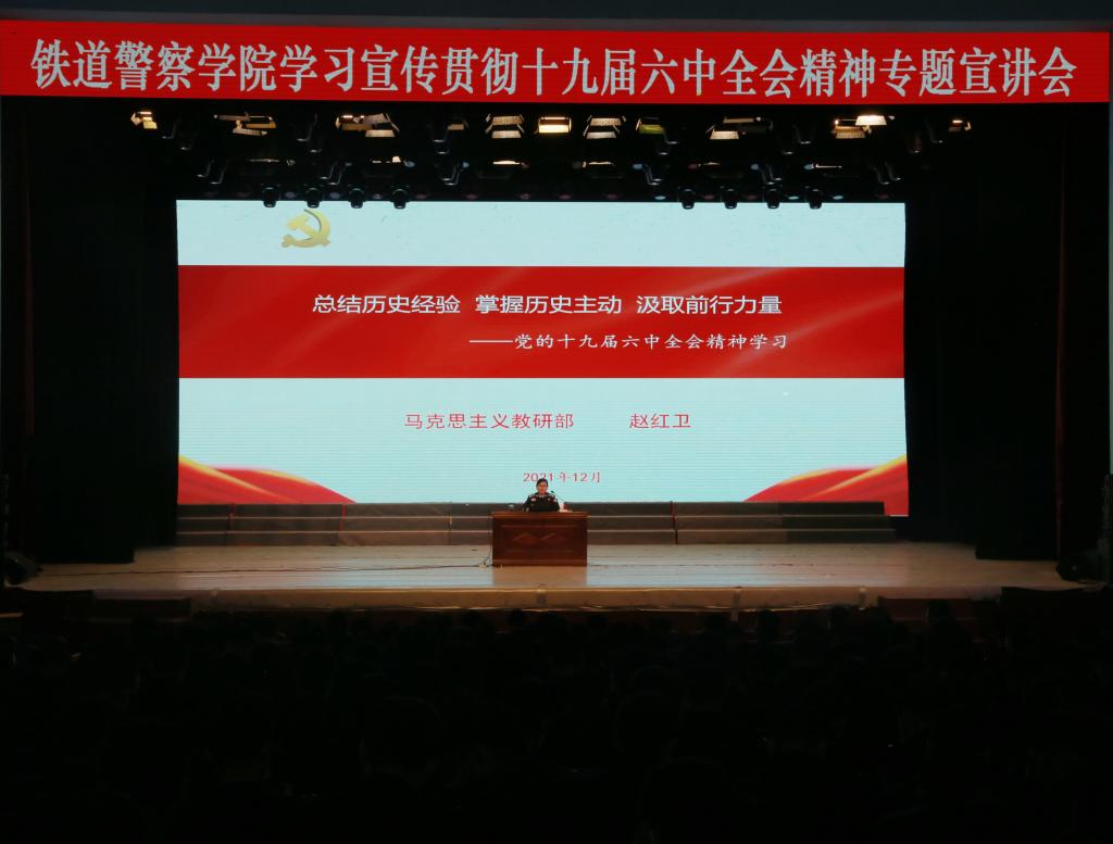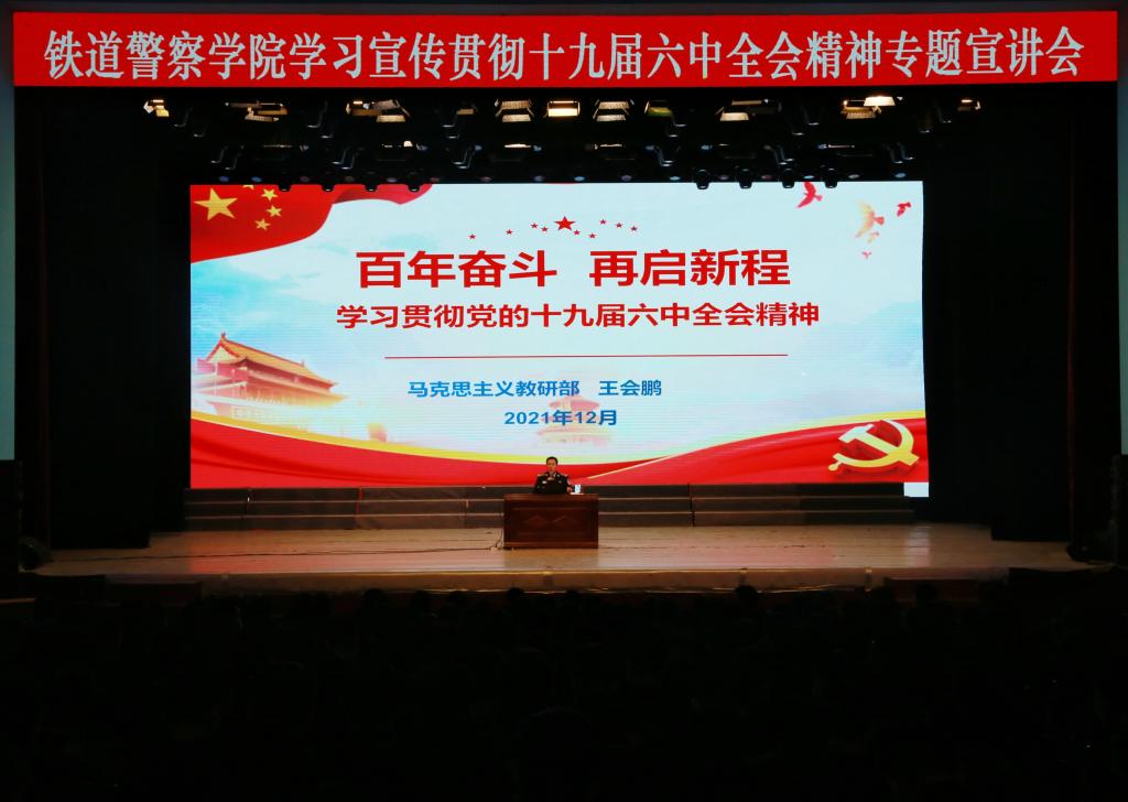 赵红卫以《总结历史经验掌握历史主动汲取前行力量——学习贯彻党的十九届六中全会精神》为题,从“党的十九届六中全会简介”“《决议》制定的必要性及主要特点”“党的百年奋斗的重大成就和重大新论断”“中国共产党百年奋斗历史意义的内在逻辑”“中国共产党百年奋斗的历史经验”五个方面,对《决议》作了系统全面、深入浅出的解读。王会鹏以《百年奋斗 再启新程——学习贯彻党的十九届六中全会精神》为题,从“十九届五中全会以来中央政治局的工作”“党的百年奋斗重大成就和历史经验”“从《决议》中汲取开创未来的智慧和力量”三个方面,概括出了历届中央全会的主题和内容、十九届六中全会《决议》的内在逻辑和精髓要义。专题宣讲会内容丰富、视野开阔,逻辑严密、论述精辟,既有政治高度、理论深度,又有很强的针对性、指导性,对全体学生深入学习、深刻领会党的十九届六中全会精神,具有很好的推动作用。