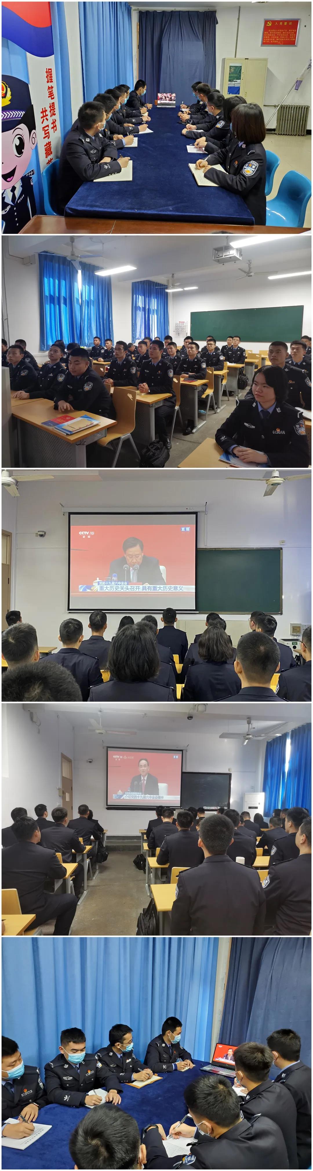 师生们纷纷表示,要认真学习贯彻落实全会精神,在以习近平同志为核心的党中央坚强领导下,以史为鉴、开创未来,为实现第二个百年奋斗目标、实现中华民族伟大复兴的中国梦不懈奋斗。要从百年党史中汲取不竭力量,立足本职岗位,牢记初心使命,传承党的百年历史经验,继续秉承“至诚至公、敏学笃行”的校训精神,牢记从警从教初心,坚持“教书”和“育人”相统一,努力拼搏、砥砺前行,为学院本科教学工作合格评估、“强特色、上水平”建设作出新的更大贡献。要奋力开创新局面,担负起党和人民赋予的新时代公安教育职责使命,以更加昂扬的精神状态走好新征程、奋进新时代,努力建设特色鲜明、学科专业优势突出的应用型重点公安院校,以优异的成绩迎接党的二十大胜利召开。