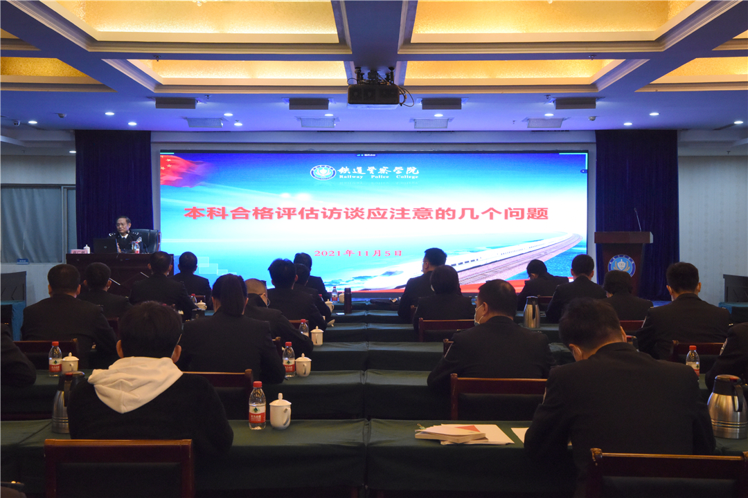 为进一步推进学院合格评估建设工作,扎实做好深度访谈等准备,11月5日下午,袁广林副院长以《本科合格评估访谈应注意的几个问题》为题,在学术交流中心八楼举办专题讲座,讲座由薛怀祖副院长主持。教务处、治安学系全体人员现场参加讲座,其他院属部门全体人员在线上参加讲座。