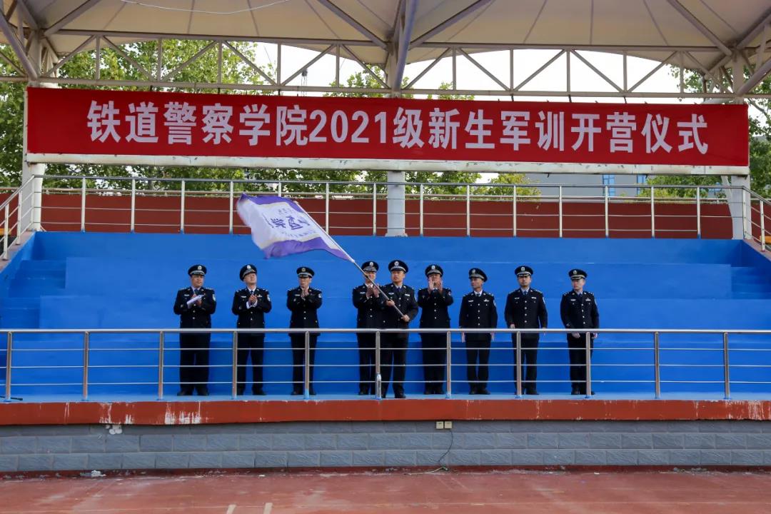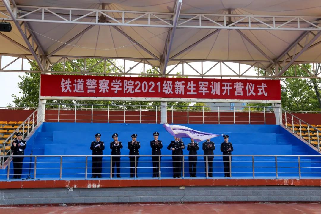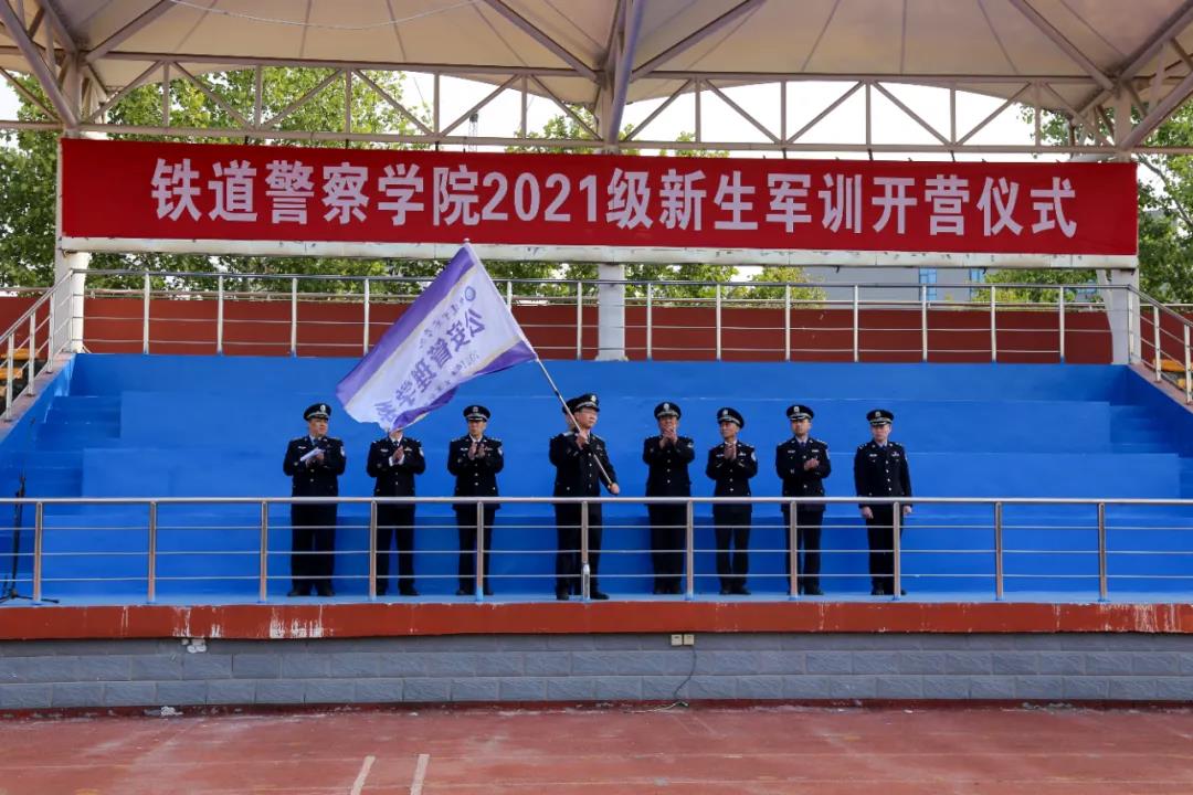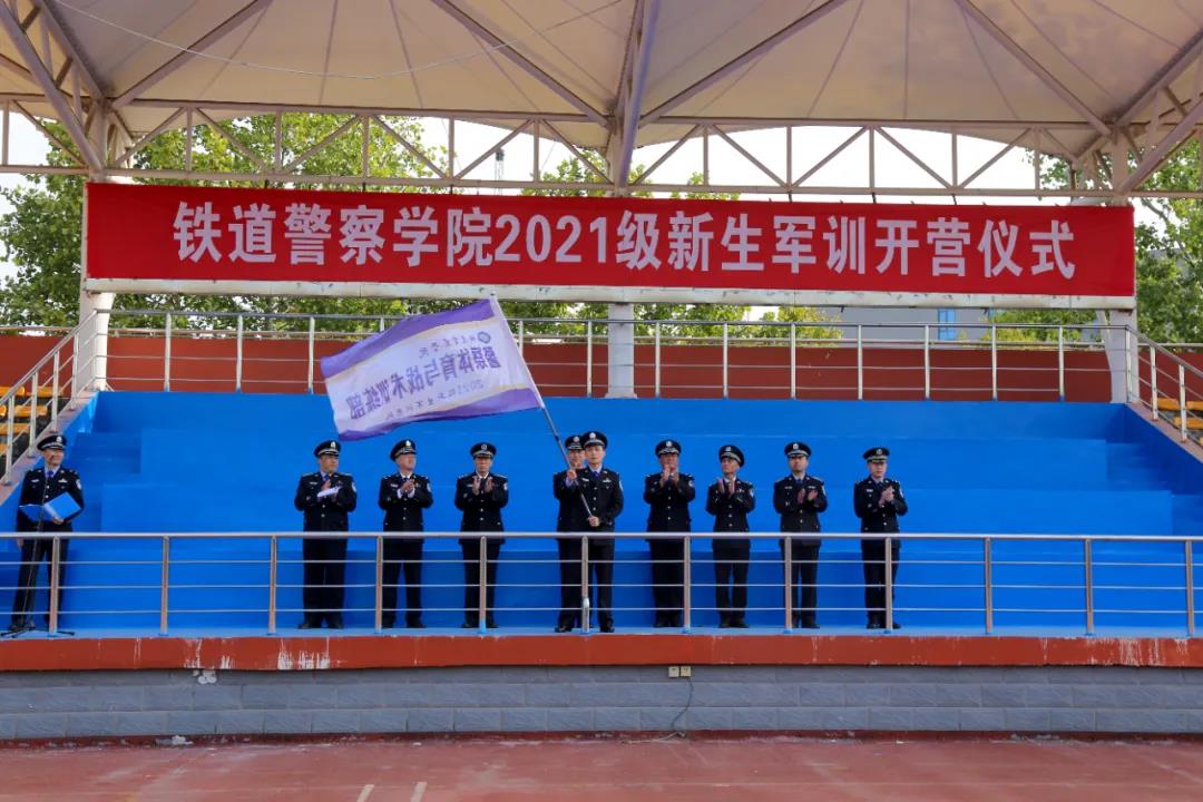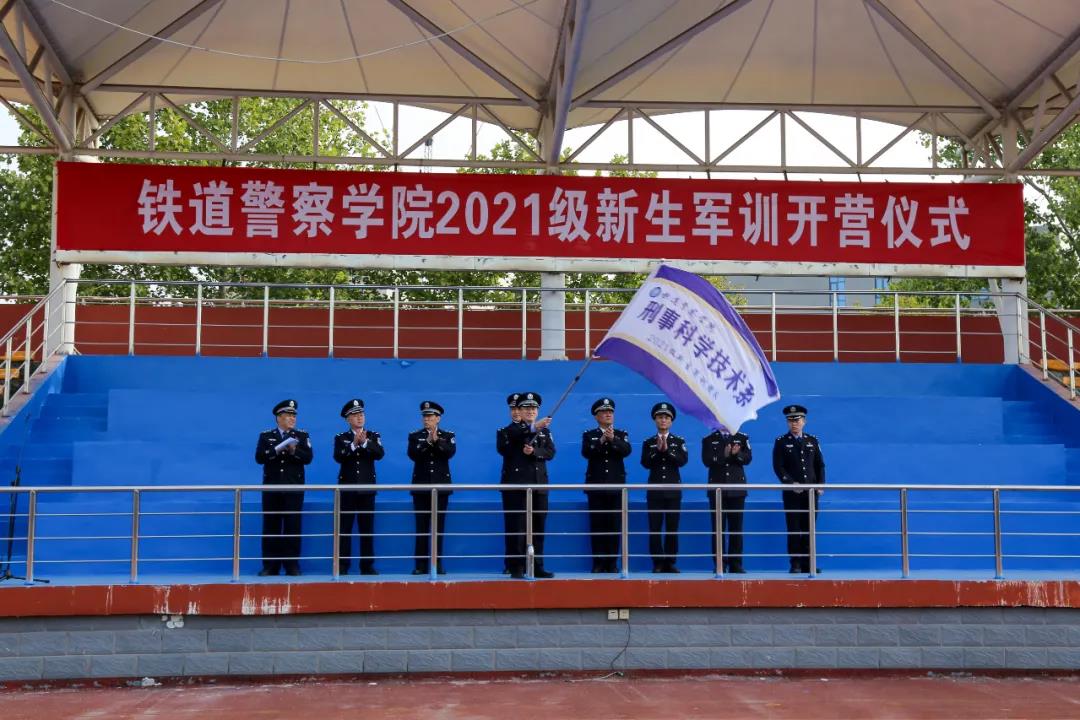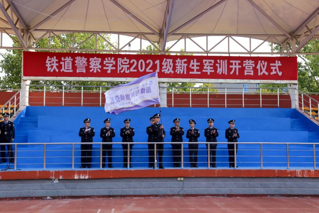 王荣胜副院长代表学院全体师生,向2021级1330名新同学来校学习表示欢迎,向承担此次军训任务的全体干部、教官表示感谢,并分别向治安学系、侦查学系、刑事科学技术系、公安管理学系、图像与网络侦查系、城市轨道交通安全保卫系、警体部军训团队授予队旗。