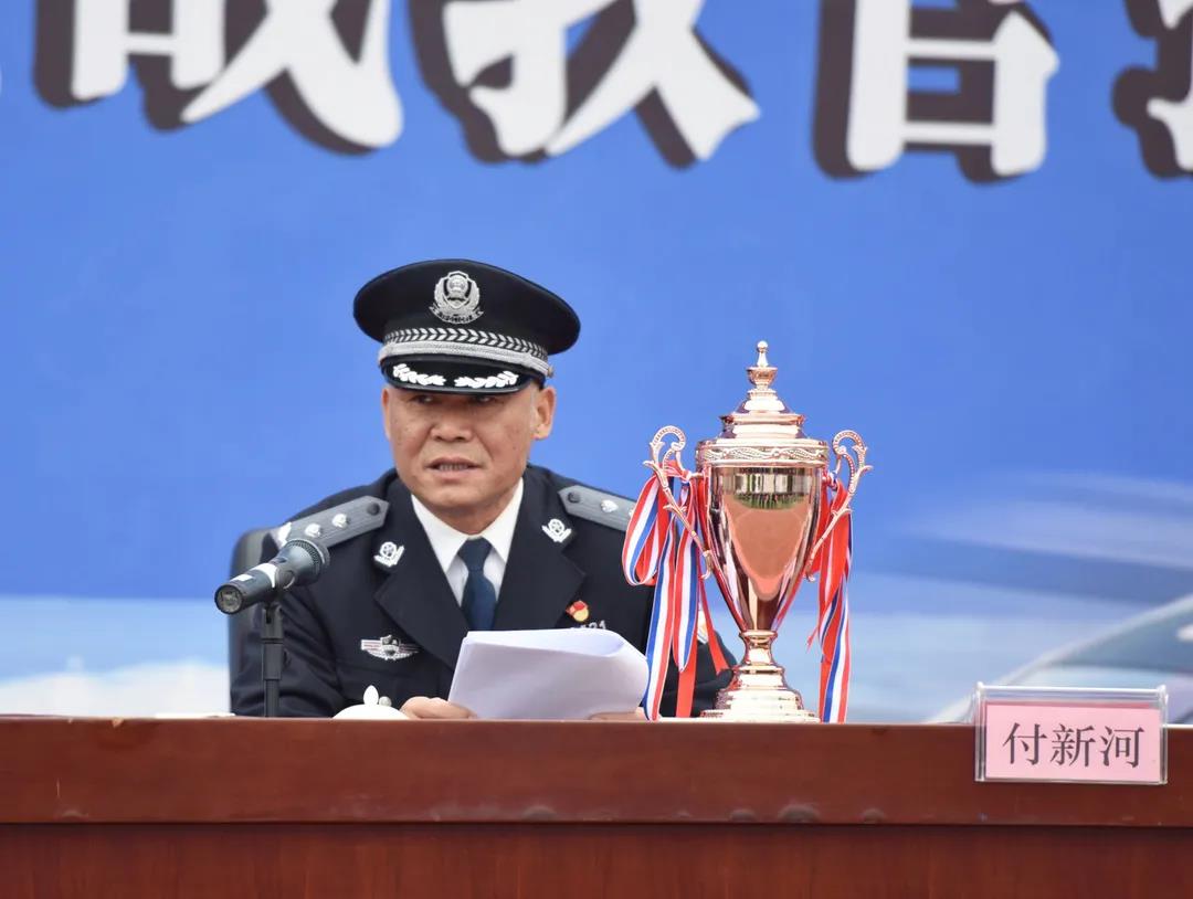 学院警察体育与战术训练教研部主任付新河宣布网络课程评比成绩。
