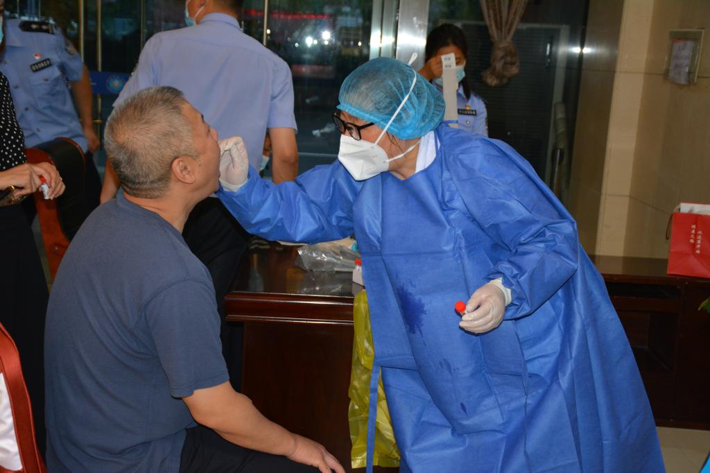 根据当前疫情防控形势,警官培训中心组建防疫团队,建立疫情防控机制,制定应急处置方案,准备了充足的防疫物资。在办班通知中要求学员报到时必须完成疫苗全程接种14天以上,报到前两日内进行核酸检测,并在报到时提交加盖单位印章的《学员健康登记表和健康承诺书》和核酸检测证明。培训期间,学员全程佩戴口罩,严格保持社交距离。为确保防疫工作万无一失,在学员报到后和结业返程前,警官培训中心协同卫生所及郑州人民医院医务人员,组织参训学员、授课教师及驻班干部集中进行两次核酸检测。