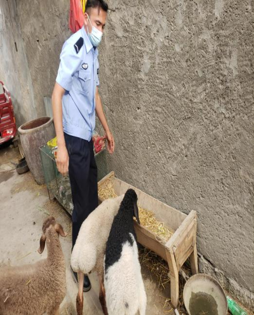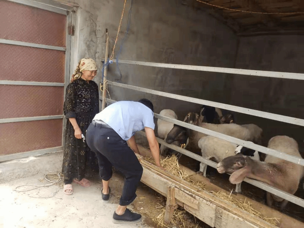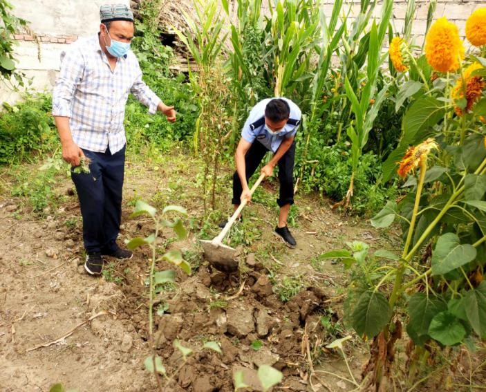 分享着他的实践故事,我们能真切感受到努尔沙提.艾麦尔的内心变化历程:黄土地的胸怀,宽广淳朴的善良 ,还有山的意志 ,铁的脊梁!在深入学习宣传贯彻习近平总书记“七一”重要讲话精神,以《习近平与大学生朋友们》一书作为自己“三下乡”社会实践的行动指南和生动教材,紧紧围绕庆祝建党百年,助力巩固脱贫攻坚成果、积极投身乡村振兴战略、服务家乡建设发展;发扬铁道警察学院优良作风,在新疆阿克苏扎根基层;体验农业生产劳作,当起实践为家乡的排头兵,为建设和谐美好阿克苏库木巴什乡作出实实在在的贡献!炎炎夏日,努尔沙提.艾麦尔穿着这身藏蓝警服来到阿克苏市库木巴什乡八大队党群服务中心,在村干部阿布拉江的带领下,到空巢老人热比艳姆奶奶家里为其送去党的温暖,干一些自己力所能及的事。在村干部阿布拉江的介绍下,了解了热比艳姆奶奶家里的情况,今年64岁的她在她脸上却看不到64岁该有的的样子更多的是岁月在她张朴实的面孔留下一道道为生活努力的痕迹。在家里她和她的老伴养着村党支部筹款给他们两口子购买的7只羊现在已经养到十只了此时想起了习近平总书记说过的金句:“幸福是奋斗出来的”。